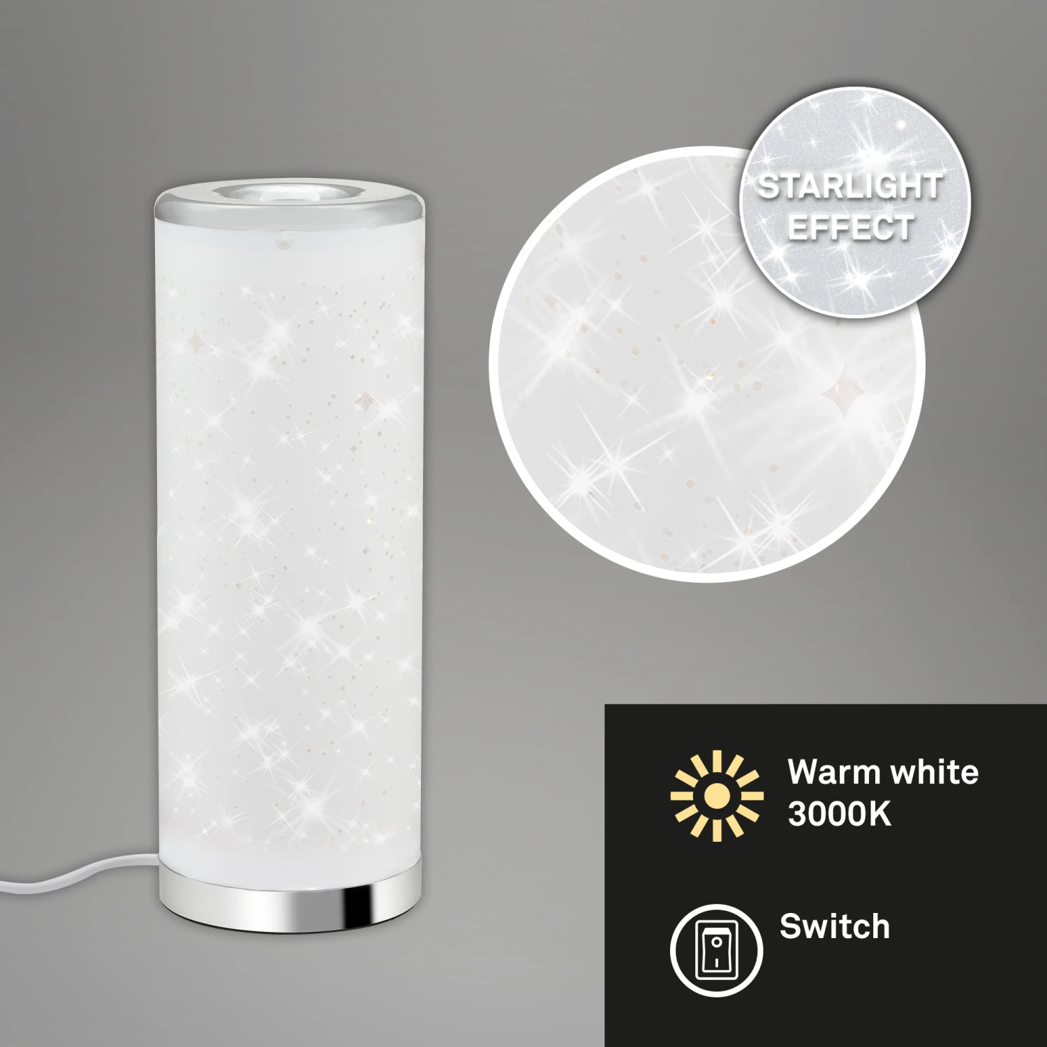 – Durch ihr schlichtes aber dennoch elegantes Design und das Sternendekor ist die weiße Tischlampe besonders im Schlafzimmer und Kinderzimmer ein echter Hingucker