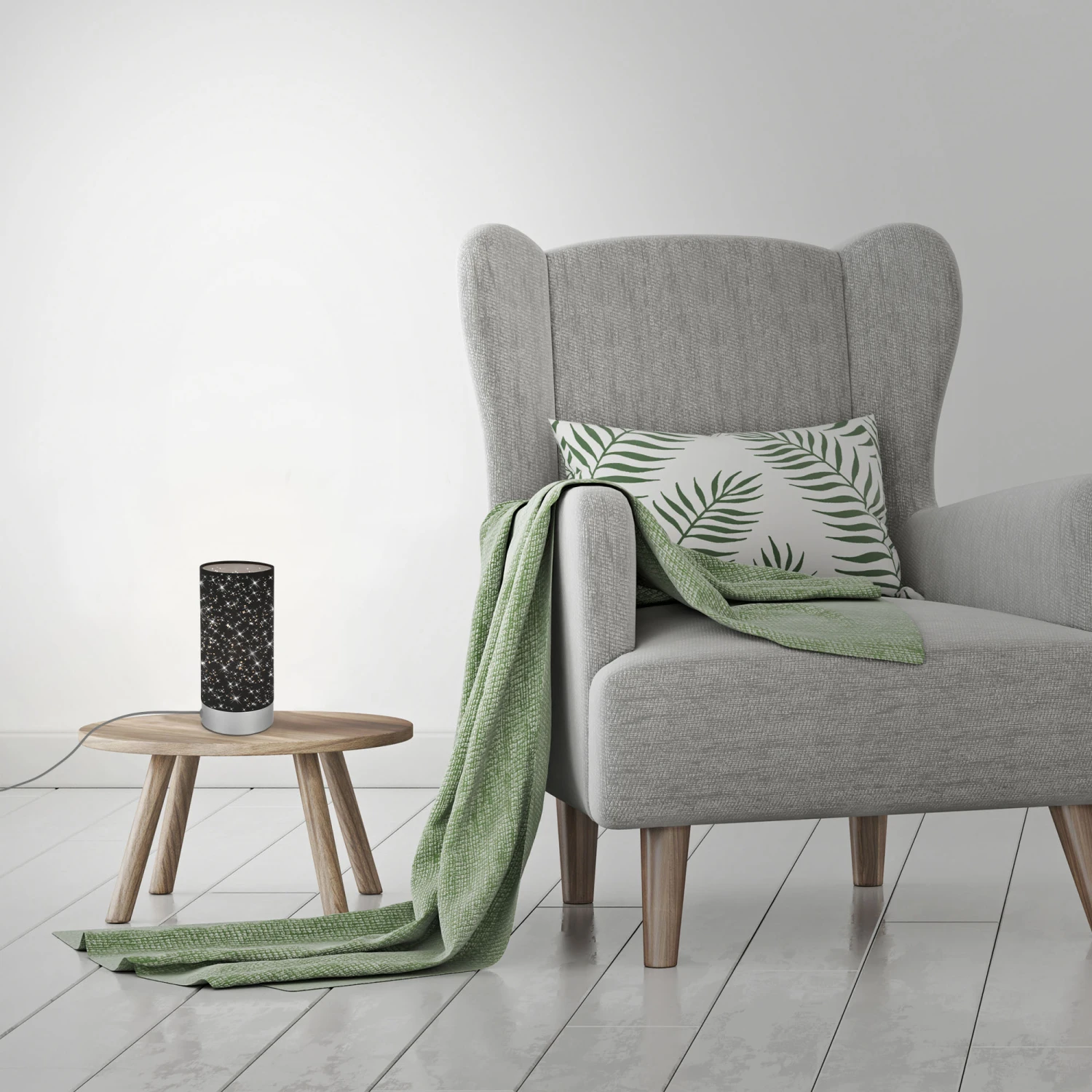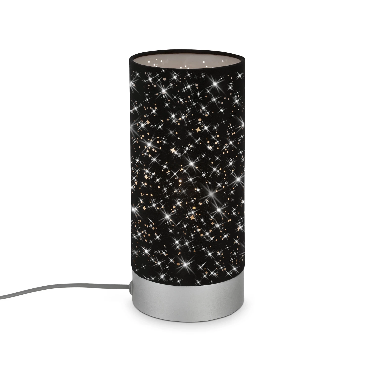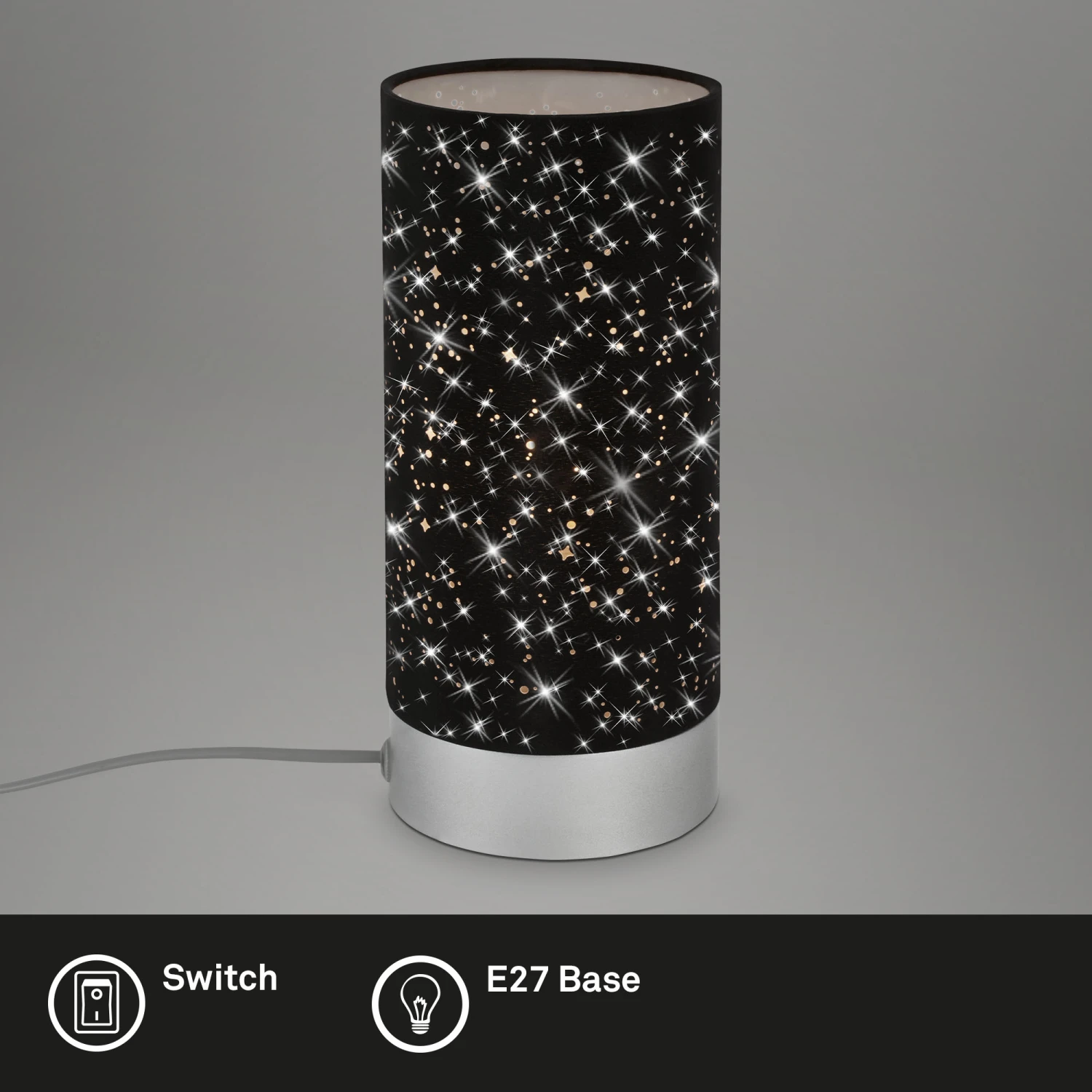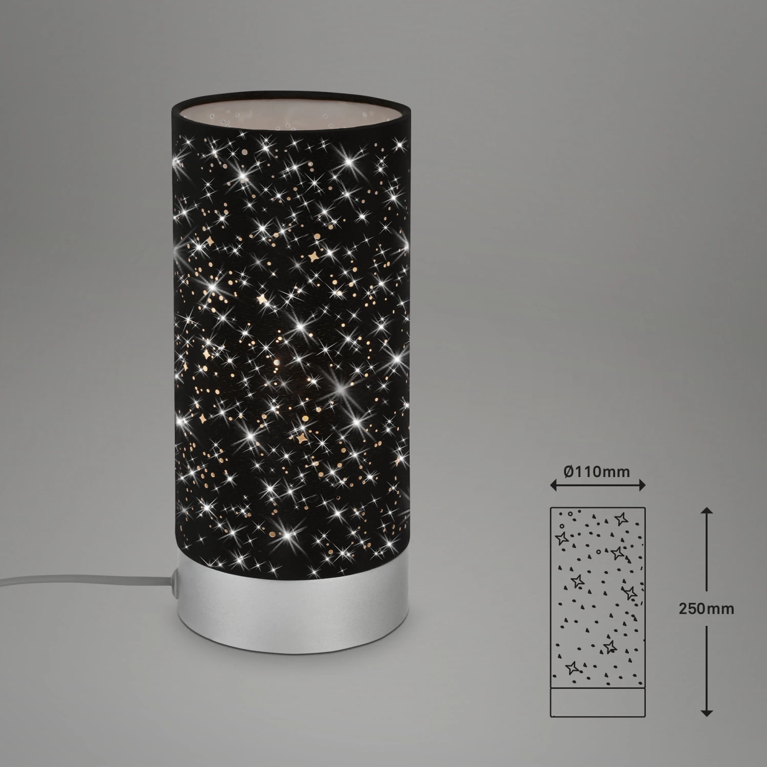 Diese schwarze Tischleuchte mit Sternendekor bringt ein gemütliches Ambiente in Ihren Wohnbereich und setzt einen stilvollen Akzent. Die 1-flammige Stoff-Tischleuchte verfügt über eine E14 Fassung. Die maximale Wattage für die Lampe beträgt 25 Watt. Lichtfarbe und Helligkeit können Sie hierbei selbst bestimmen