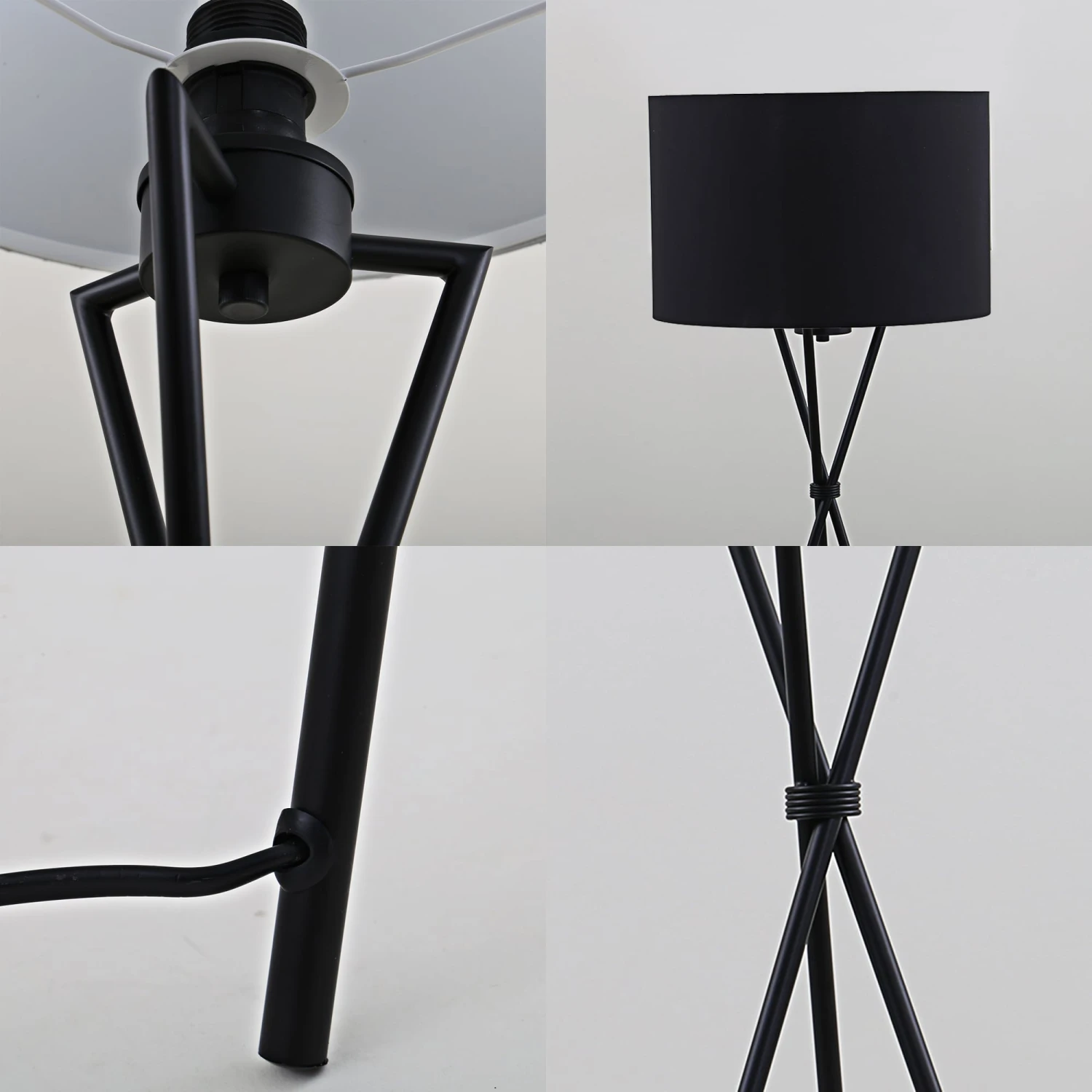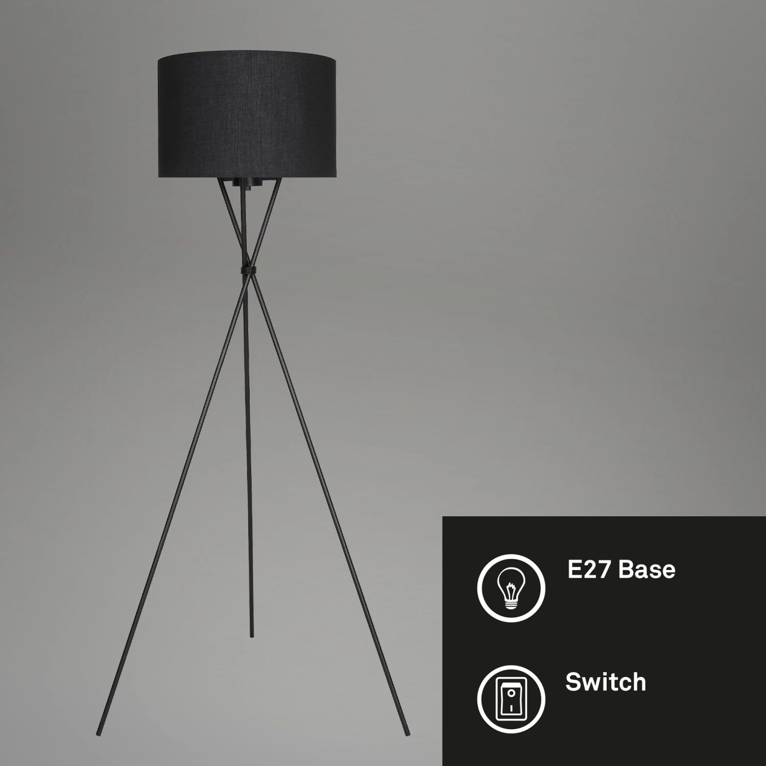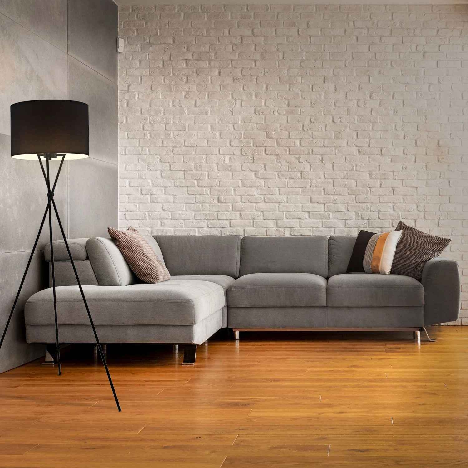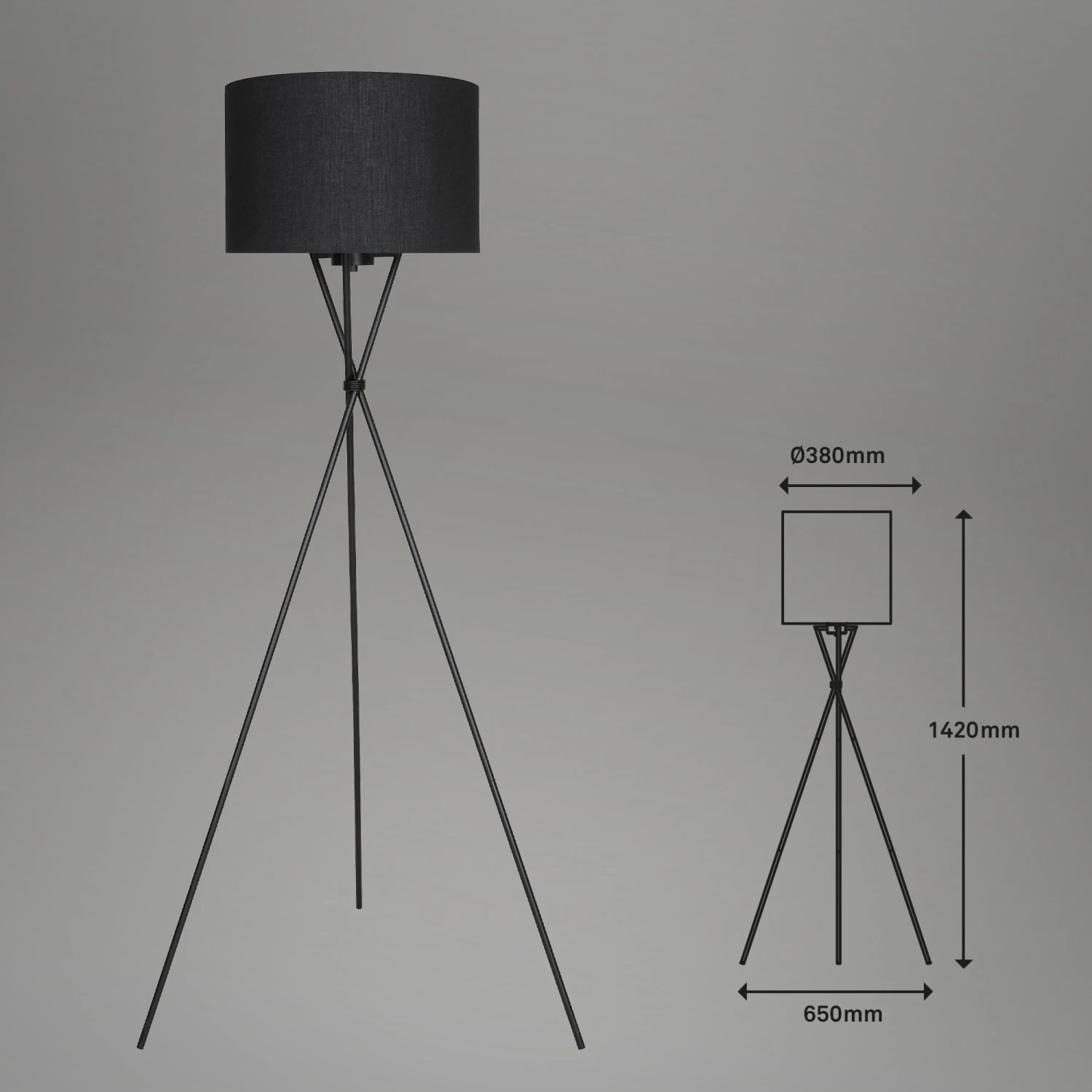 – Moderne Stehlampe gefertigt aus Metall/Stoff mit elegantem schwarzen Stoffschirm