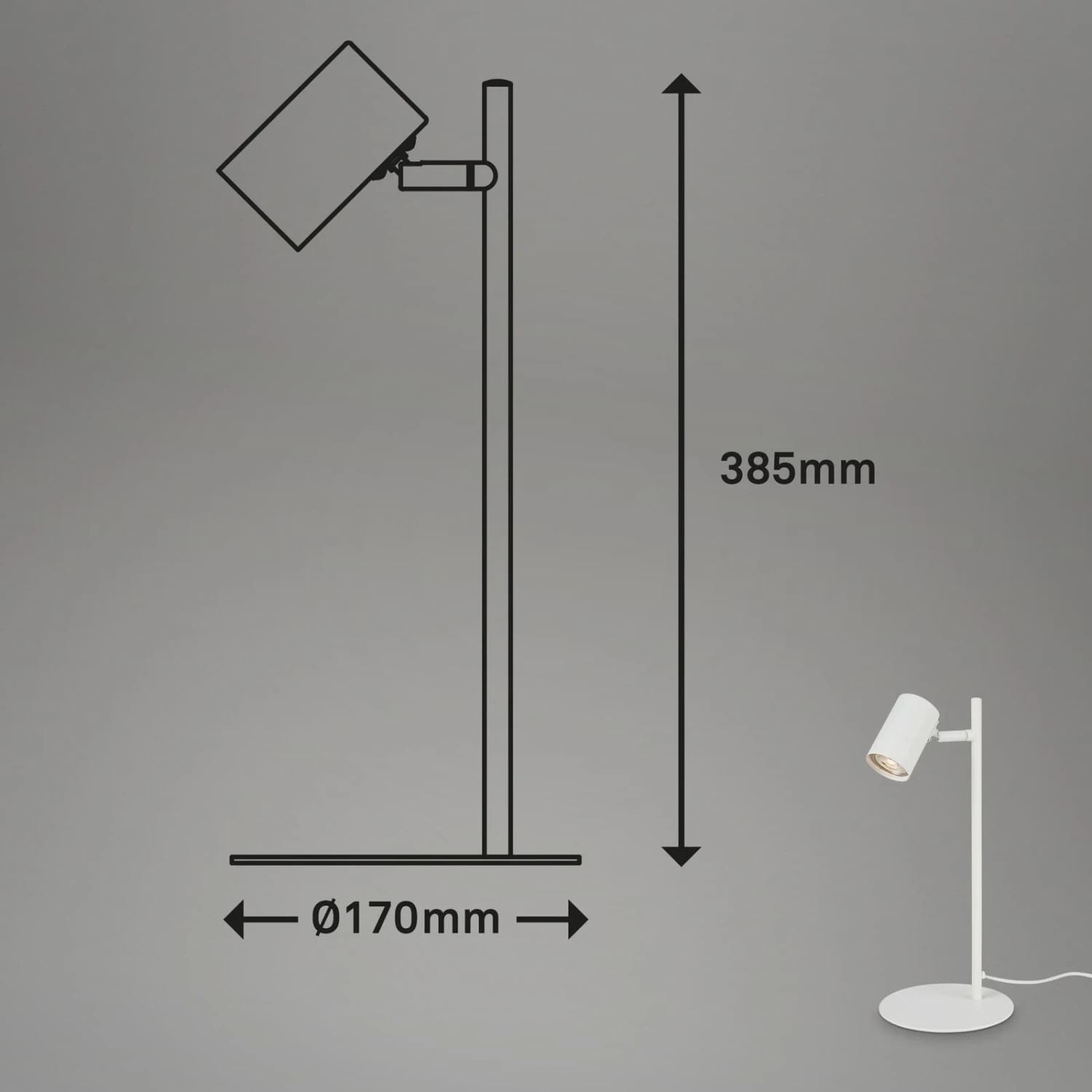 – und Ausschalten der verstellbaren Nachttischlampe. Im Lieferumfang der Nachttischleuchte ist keine Glühbirne enthalten. Benötigt wird ein Leuchtmittel mit einer maximalen Leistung von 9 Watt und eine GU10-Fassung. Die Produktabmessungen der Leselampe betragen 170×385 mm (DxH)